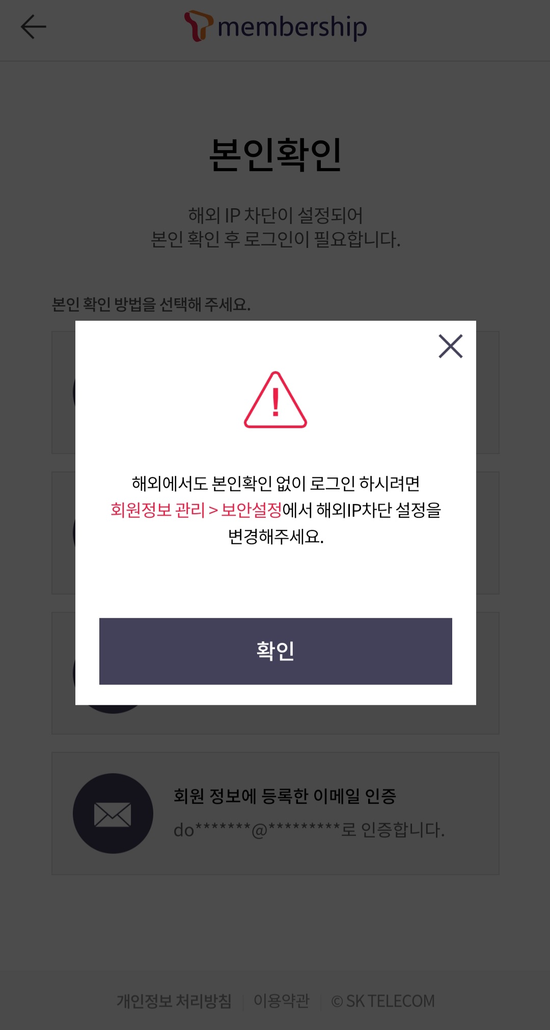 ํ•œ๊ตญ์—์„œ ํ•ด์™ธ IP ์ฐจ๋‹จ ์„ค์ •์„ ๋ณ€๊ฒฝํ•˜์‹œ๊ณ  ์ถœ๊ตญํ•˜์‹œ๋ฉด ๋ฉ๋‹ˆ๋‹ค.