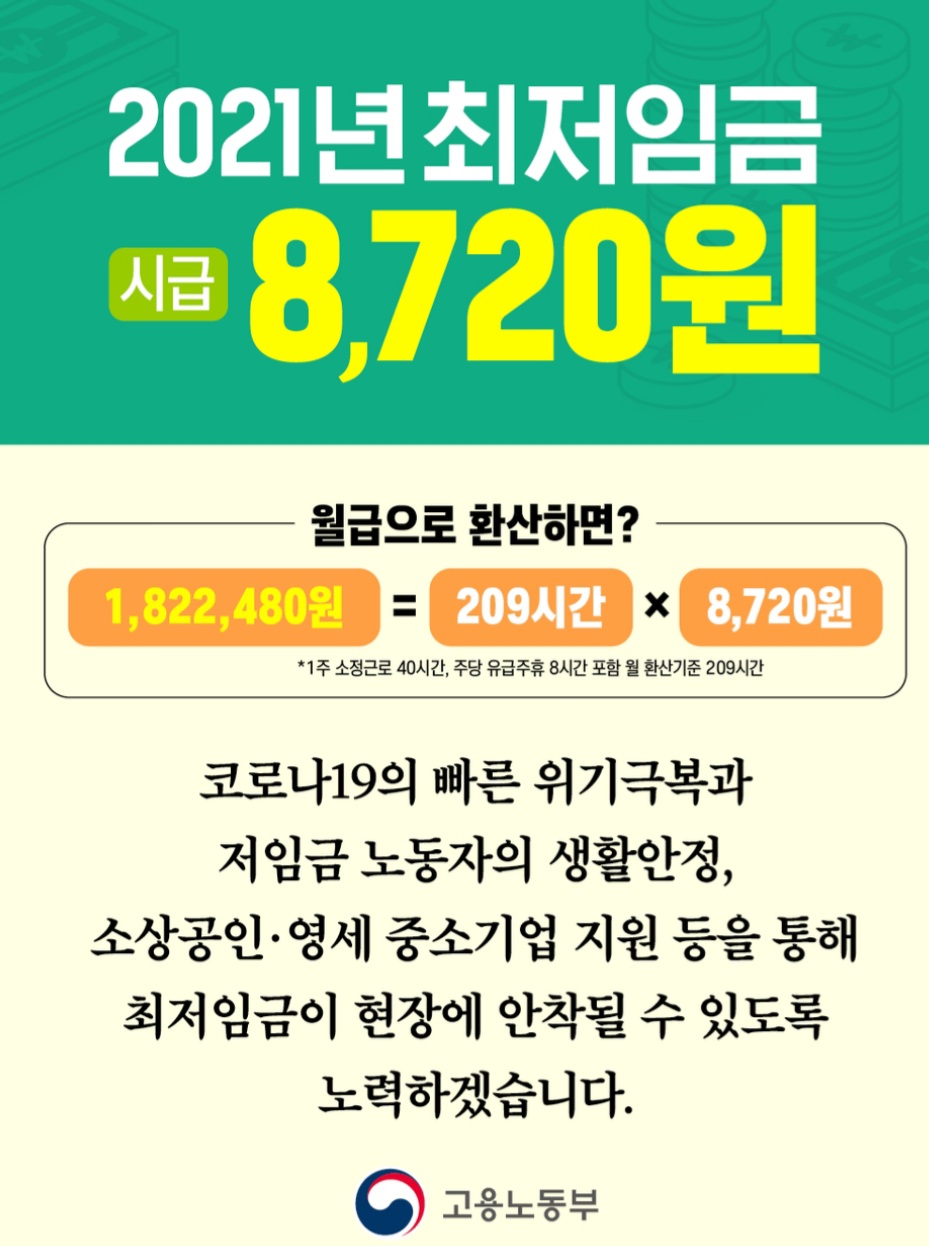 2021๋ ์ต์ ์๊ธ์ 8,720์์ ๋๋ค.